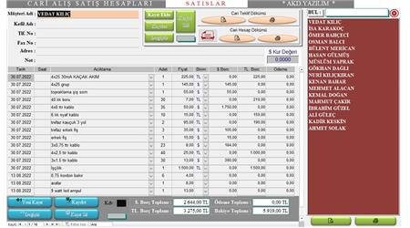 Bu prg. benim baş yapıtlarımdan bir tanesi, barkodlu satış formu, Hızlı satıştır, içinde 300 civarında ürünün barkodu kayıtlı, barkodla okutunca otomatik satışa atıyor, aynı anda 7 müşteriye hizmet verebiliyorsun, satış yaptığın müşterinin cari kartı varsa, satış türü seç kutusundan müşteriyi seçip onun hesabına gönderebiliyorsunuz, vs.vs. Şifre=1